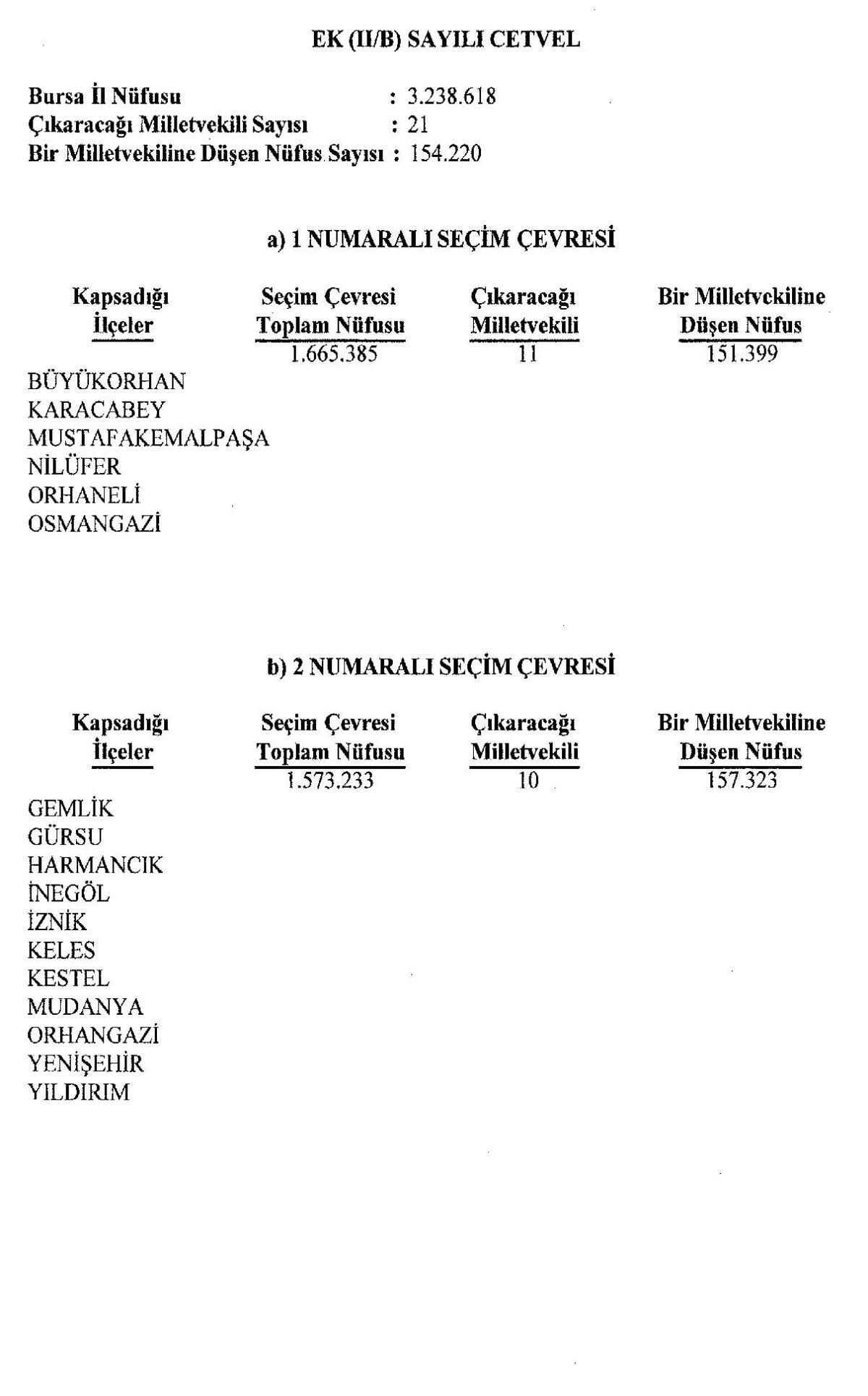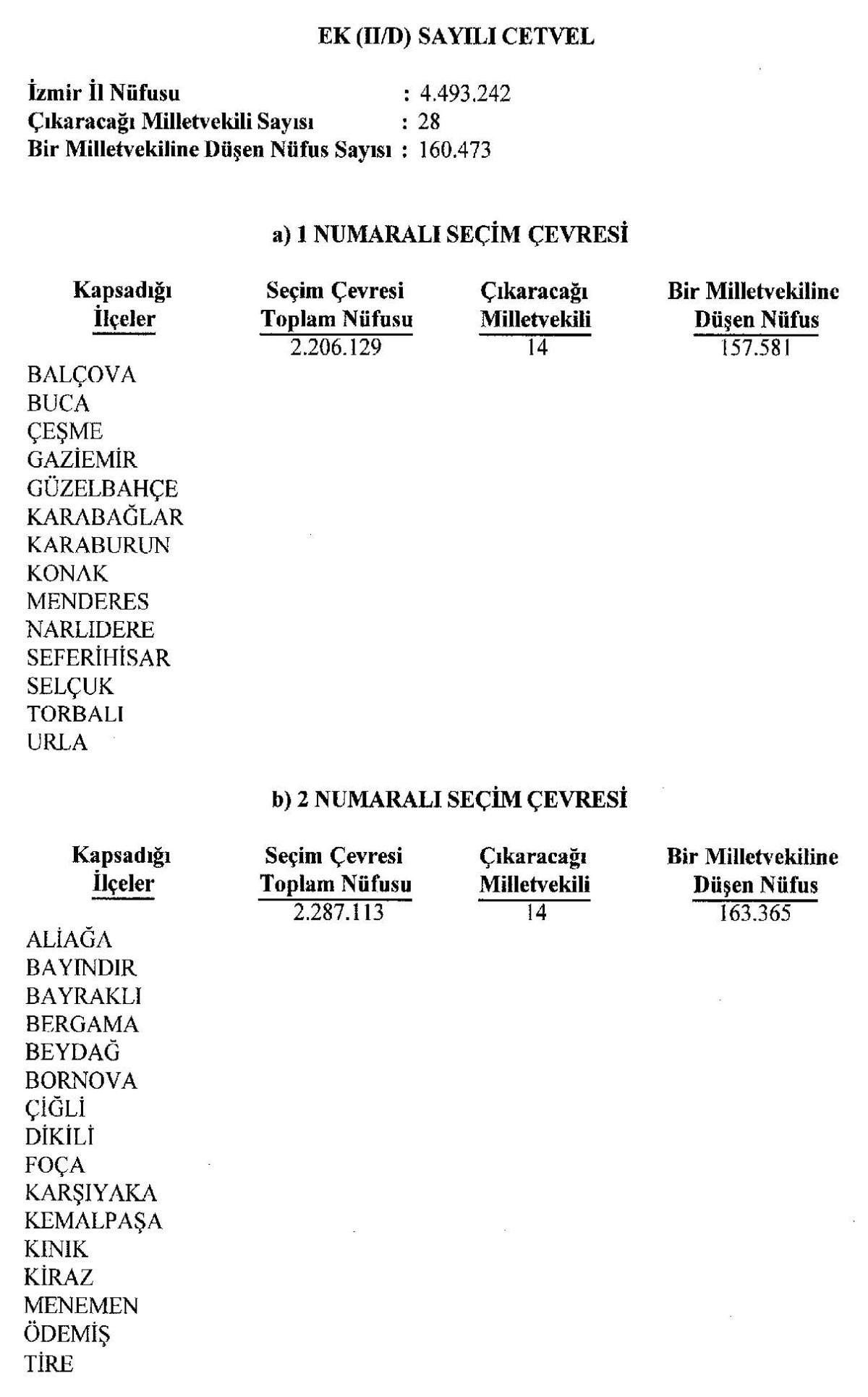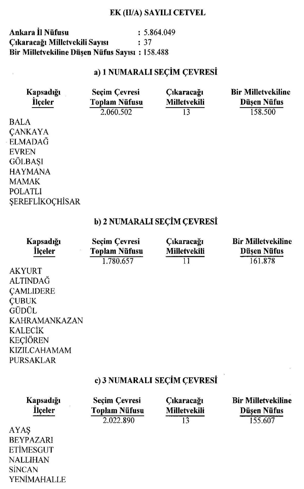Ayrıca Ankara 3, Bursa 2, İstanbul 3, İzmir 2 seçim bölgesine ayrılacak.