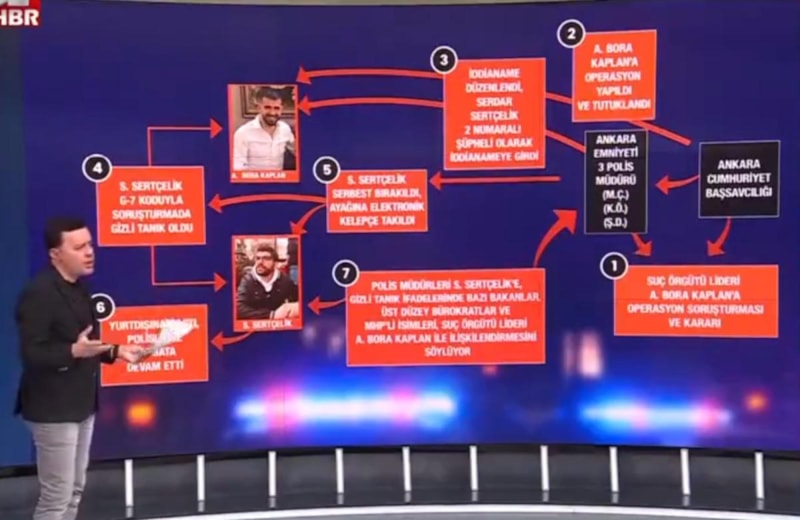 Suç örgütü lideri Ayhan Bora Kaplan'a soruşturma başlatılıyor. Daha sonra operasyon kapsamında gözaltına alınıp tutuklanıyor. Tutuklanırken başında bulunan polis memuru M.Ç., gözaltına alınan emniyet müdürlerinden birisi. Daha sonra Ankara Başsavcılığı'nın soruşturmasıyla iddianame düzenleniyor. Serdar Sertçelik, 2 numaralı şüpheli olarak iddianameye giriyor. Serdar, polislerle yaptığı görüşmeler sonrasında G-7 koduyla (gizli soruşturma) gizli tanık oluyor. Daha sonra gizli tanık olduğu için serbest bırakılıyor. Ayağına elektronik kelepçe takılıyor. Bu kelepçeyle Ankara'da fink atıyor. Ankara'da bir barda Ece Ronay isimli sevgilisiyle eğlendikten sonra bir işkembeciye gidiyor. İşkembecide bir olay çıkıp vuruluyor. Daha sonra kendi iddiasına göre polis yönlendirmesiyle yurt dışına kaçıyor. Şu an Dubai'de olduğu iddia ediliyor. Polis müdürleri Serdar Sertçelik'le orada da irtibatlarını sürdürüyorlar.