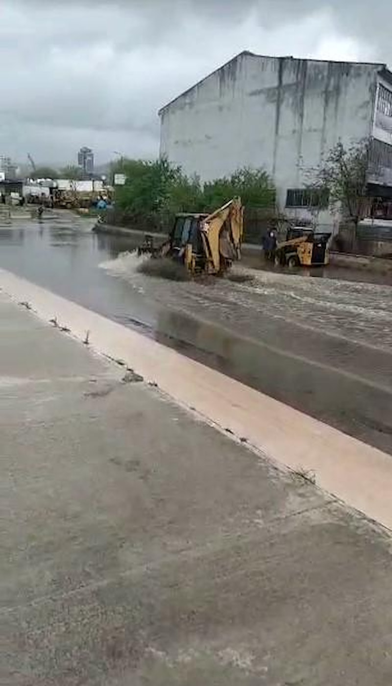 Yağmurun etkisinin azalmasının ardından yoldaki suyu boşaltmak için kendi imkanlarıyla yoldaki ızgaraları iş makinalarıyla açan iş yeri sahipleri ABB'nin iki yıldır önlem almamasından şikayetçi oldu.