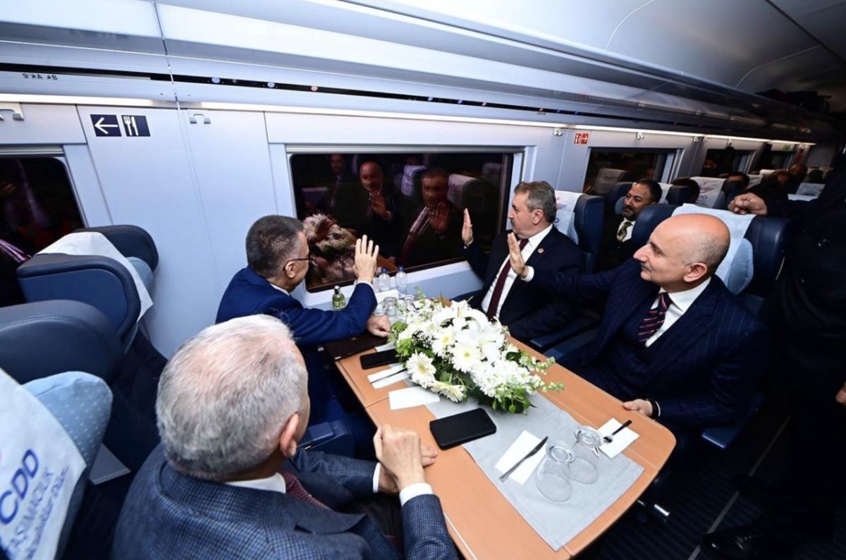 Bugün ilk seferini gerçekleştiren trende, Cumhurbaşkanı Yardımcısı Fuat Oktay, Ulaştırma ve Altyapı Bakanı Adil Karaismailoğlu, AK Parti Genel Başkan Vekili Binali Yıldırım, BBP Genel Başkanı Mustafa Destici ve basın mensupları yer aldı.