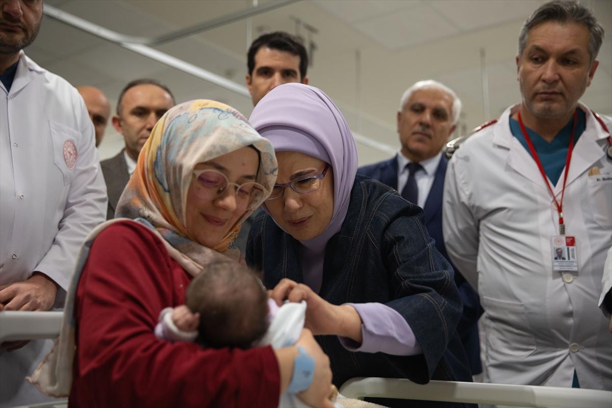 Refakatçisi olmayan 0-1 yaş aralığındaki 16 bebeğin Etlik Şehir Hastanesi'ne sevk edilmesinin hemen ardından Emine Erdoğan hastaneye geldi.