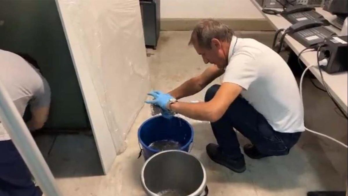 Sağanak yağış nedeniyle büyükelçiliğin bazı bölümlerini su bastı.