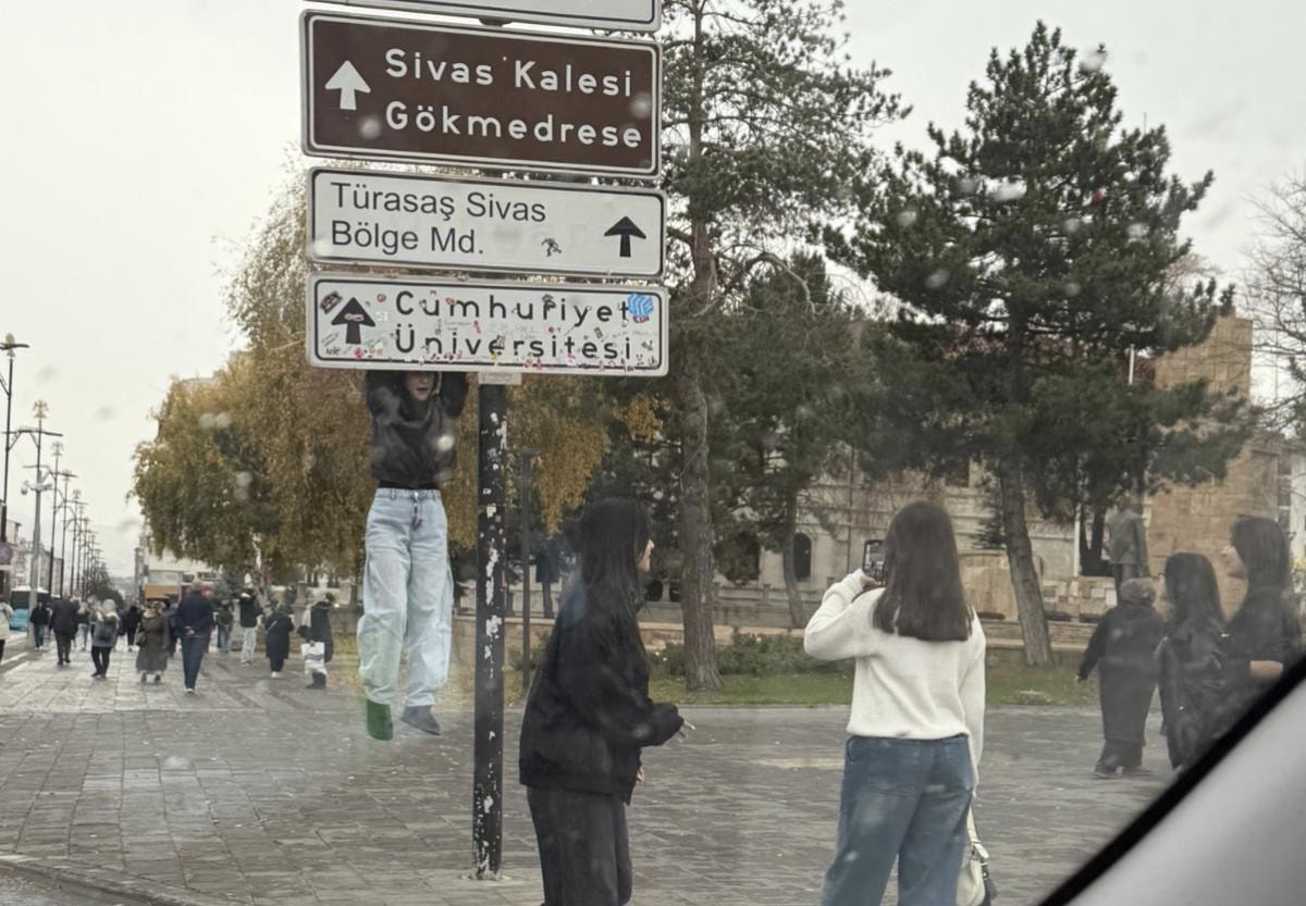 - Ankara'da Kızılay'da başlayan tabelaya asılarak fotoğraf çekme akımı, Sivas'a da yayıldı.