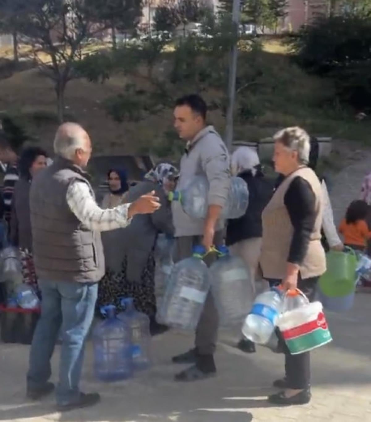 ELLERİNDE BİDONLARLA SU ALMAK İÇİN SIRAYA GİRİYORLAR