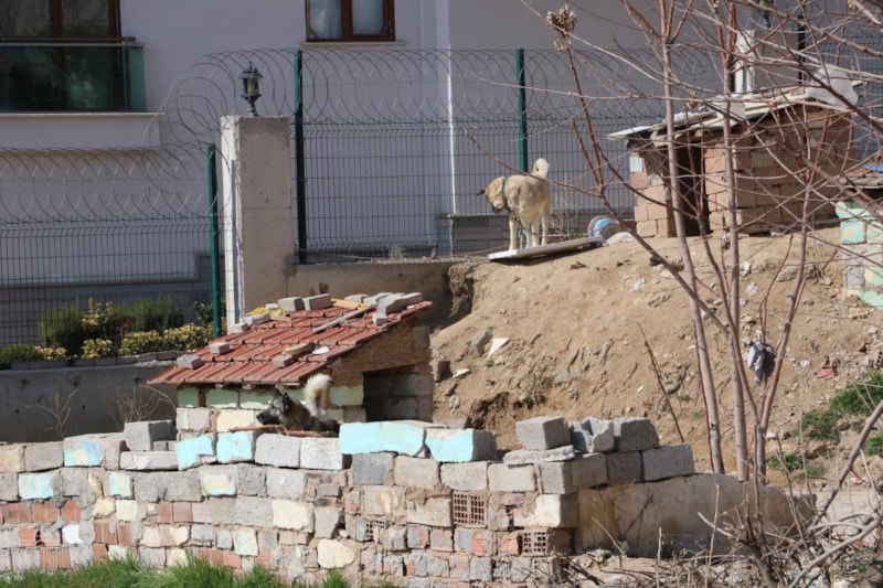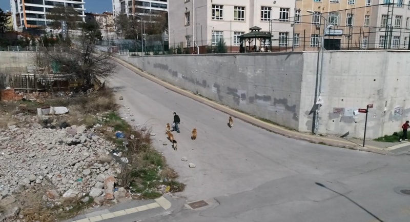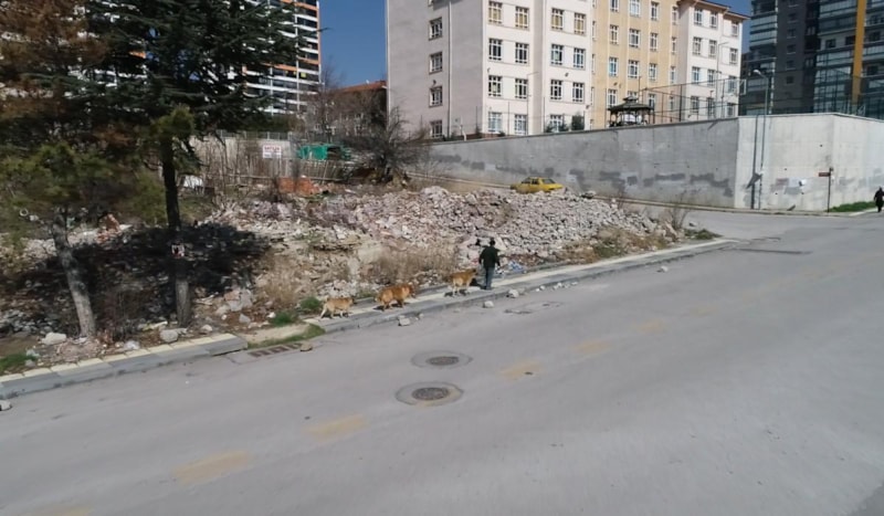 Ankara'nın Altındağ ilçesi Güneşevler Mahallesi Yıldıztepe Caddesi'nde Piri Reis Anadolu Lisesi, Şehit Serhat Öztürk Ortaokulu ve Şehit Albay İbrahim Karaoğlanoğlu İlkokulu'nun bulunduğu bölgedeki boş arazide, sokak köpekleri besleniyor.