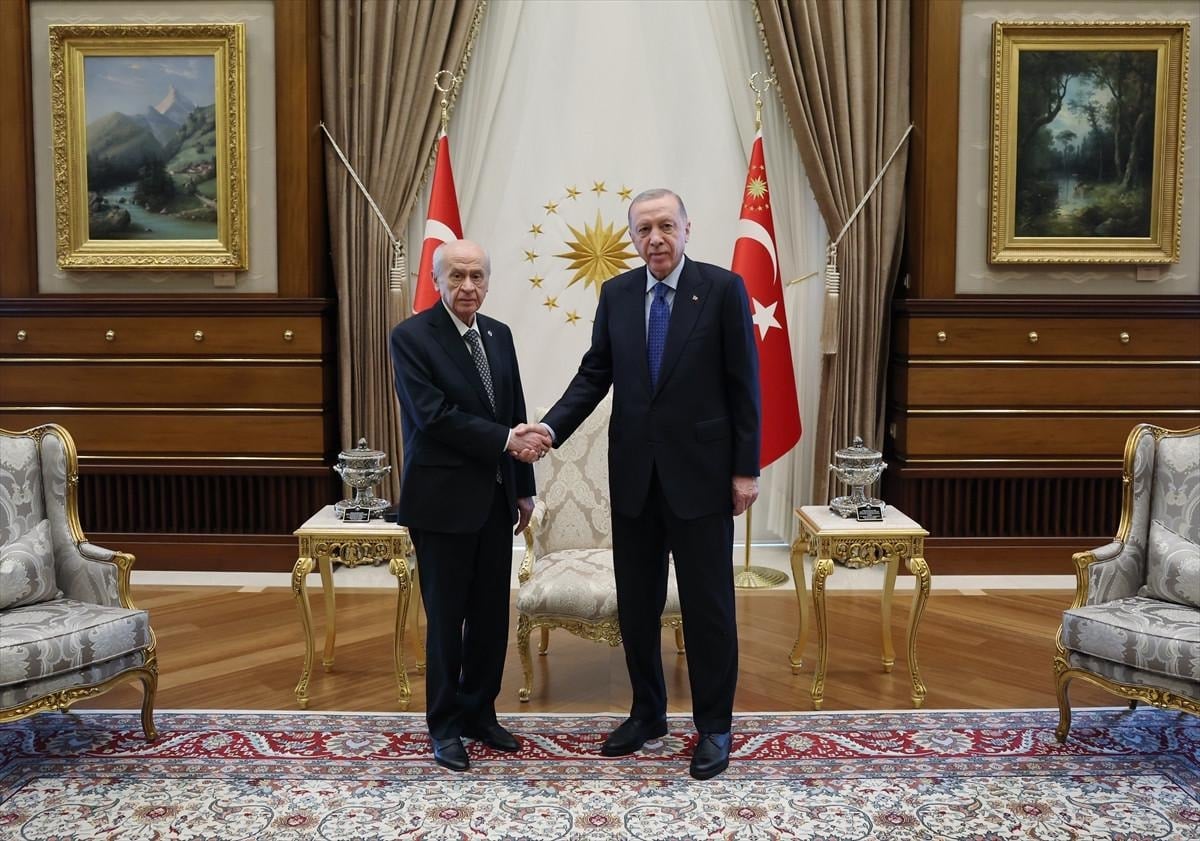 Erdoğan, Bahçeli'yi 14.45'te Beştepe'de kabul etti. Görüşme, basına kapalı gerçekleştirildi ve 1 saat sürdü.