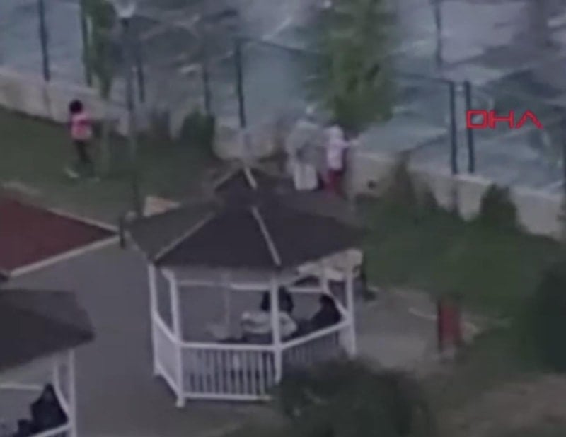 Görüntülerde, Tuğçe Ö. E.'nin köpeğini tasmasız ve ağızlıksız şekilde basketbol sahasında gezdirdiği, korkuyla sahadan çıkan çocukların ise tellerin arkasında köpeği izlediği anlar yer aldı.