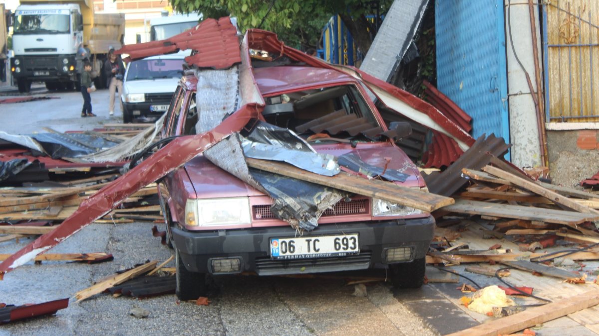 Ankara'nın Akyurt ilçesinde şiddetli yağış ve fırtına nedeniyle 3 binanın çatısı uçtu.