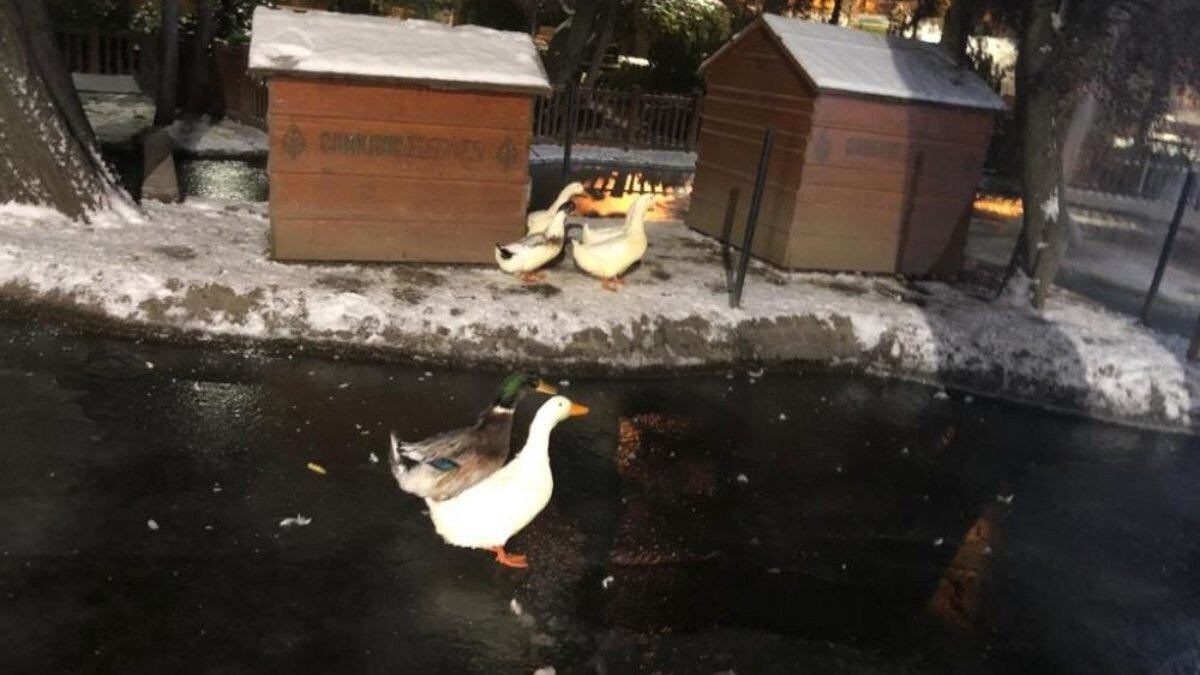 Hava sıcaklığının çok düşük olması nedeniyle Ankara’nın simgelerinden Kuğulu Park’taki süs havuzları buzla kaplanırken kuğuların da buz tutmaları görenleri şaşırttı. Havuzların fıskiyelerinin altlarında ise biriken buz kalıpları dikkat çekti.