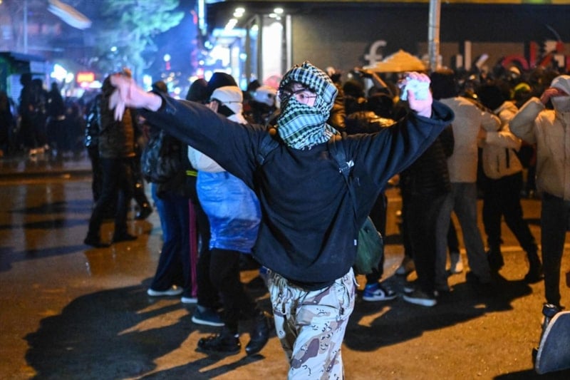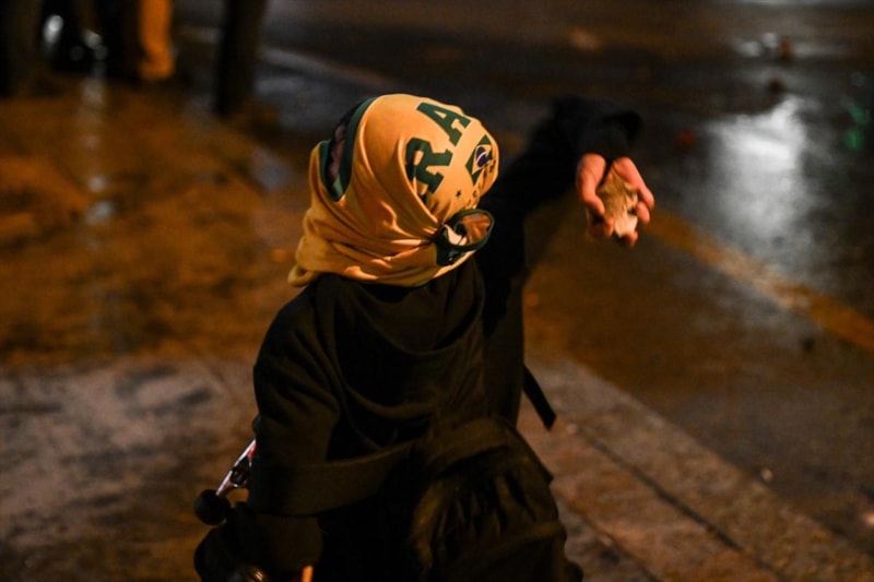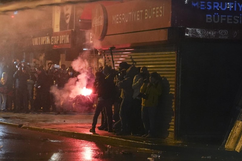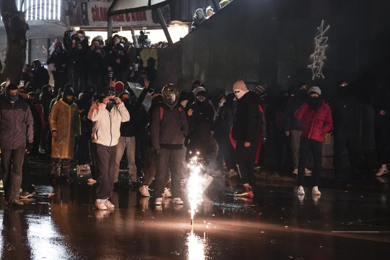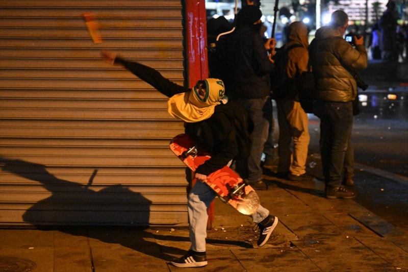 Tüm uyarılara rağmen dağılmayan grup, polis ekiplerine havai fişek, taş, cam şişe, sandalye parçaları attı. Bu esnada 5 polis memuru yaralandı.