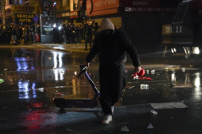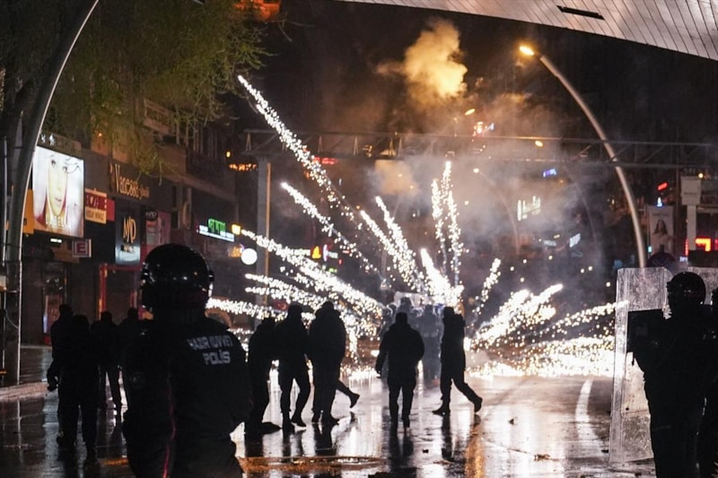 Ankara'da, İstanbul Büyükşehir Belediyesine (İBB) yönelik yolsuzluk ve terör soruşturmasını protesto amacıyla düzenlenen izinsiz gösterilerde 5 polis yaralandı. Güvenlik güçlerine saldıran göstericilerden 66 kişi gözaltına alındı.