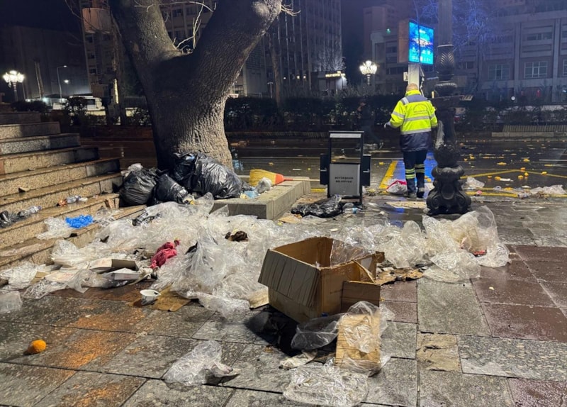 Göstericilerin dağıldığı alanlarda oluşan çöp yığınları belediye ekiplerince temizlendi.