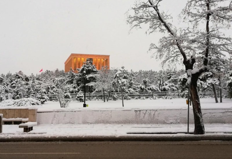 Bir diğer yandan kentin en büyük değeri Anıtkabir'de de kar yağışı sonrasında kartpostallık görüntüler oluştu.