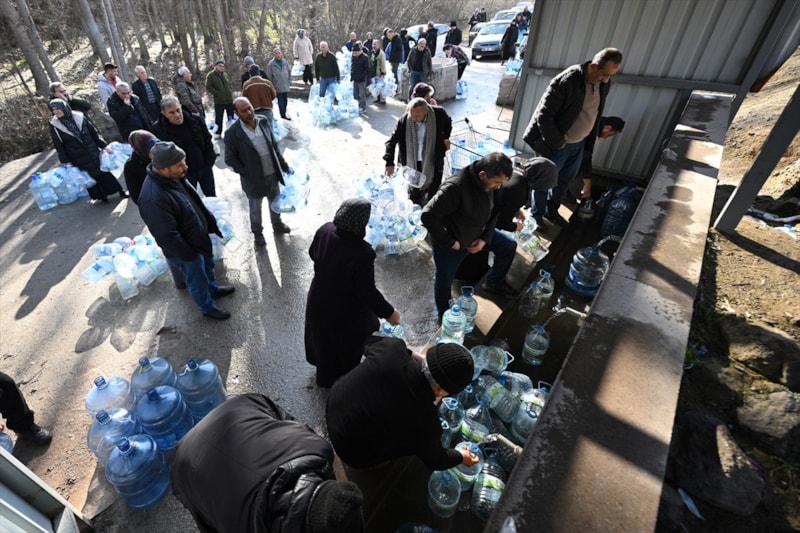 Evlerine su götürmek için ellerinde bidonlarla sıraya girenler, çeşmede uzun kuyruklar oluşturuyor.