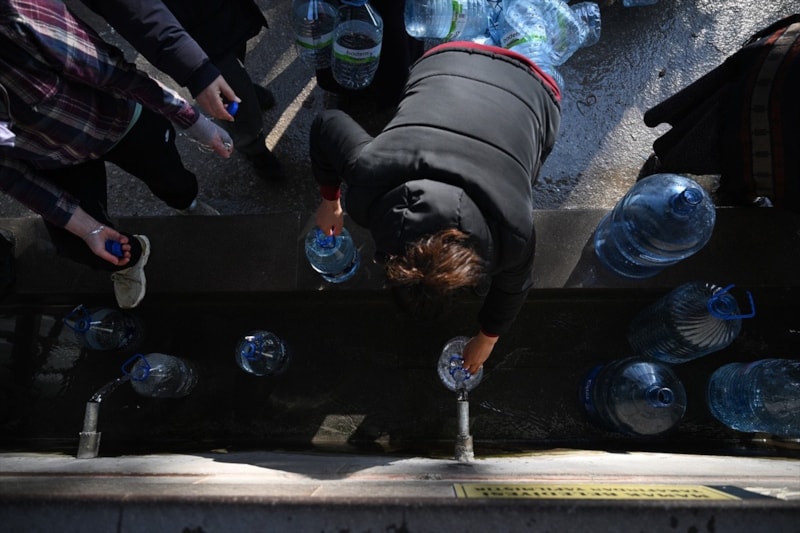Kent genelindeki su kesintilerinden etkilenen ilçelerden Mamak ve Altındağ'da vatandaşlar, su ihtiyacını Mamak'ın Dostlar Mahallesi'nde bulunan kaynak suyu çeşmesinden gidermeye çalışıyor.