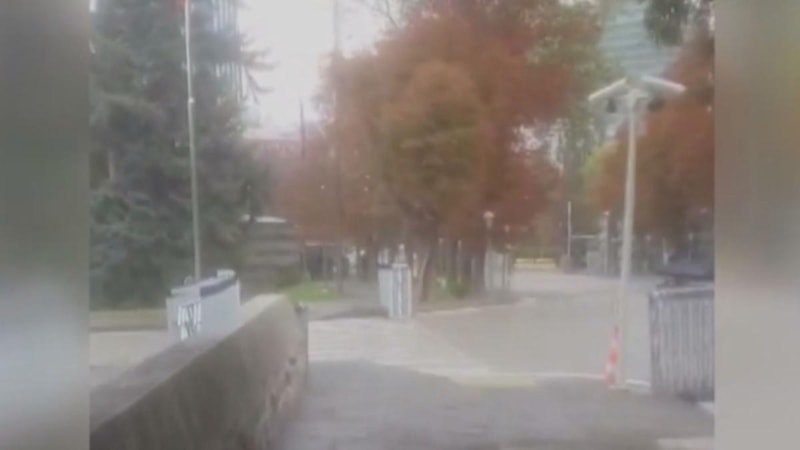 Bölgeden gelen görüntülerde, saldırıda İçişleri Bakanlığı Emniyet Genel Müdürlüğü'nün giriş kapısında büyük bir hasar meydana geldiği görülüyor.