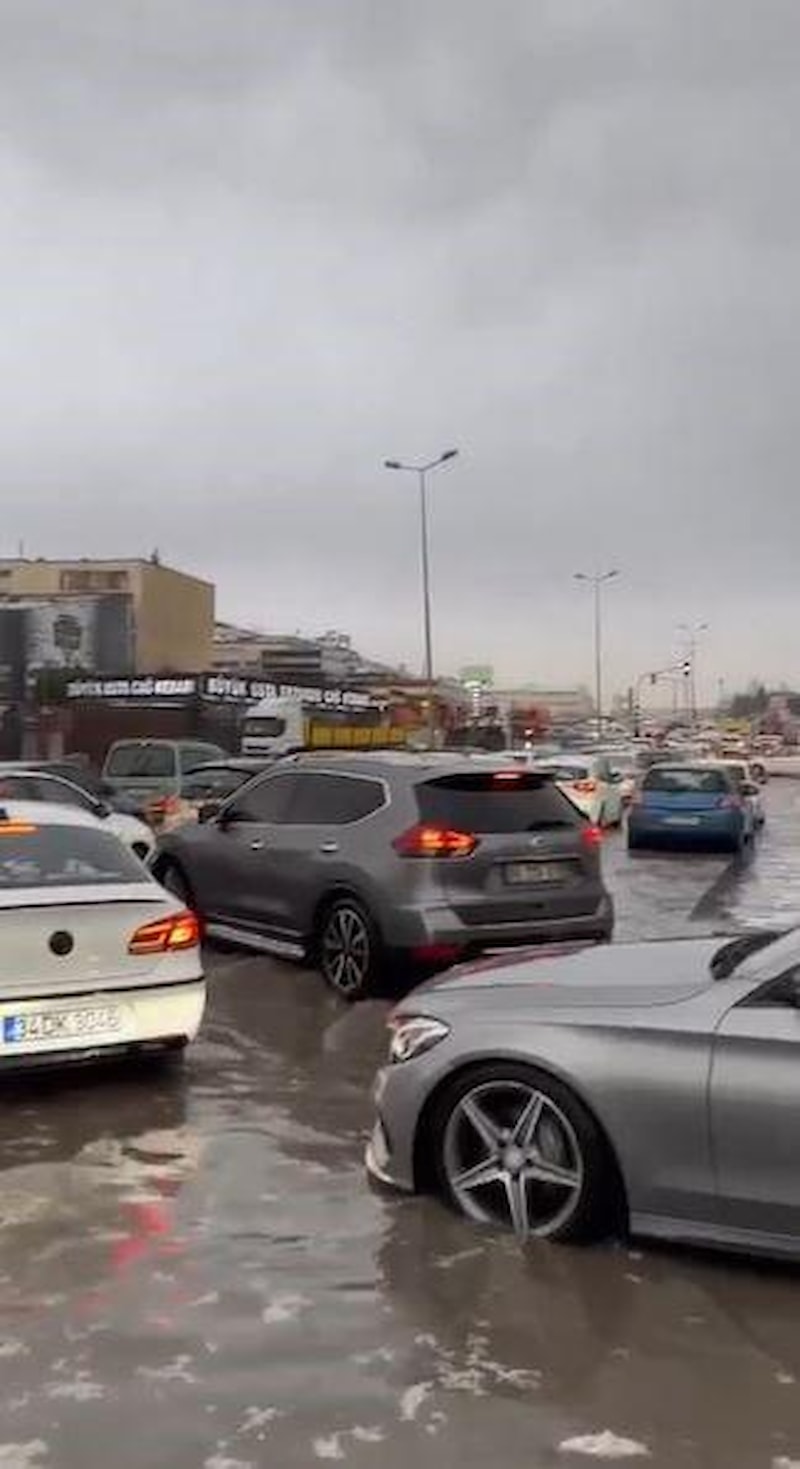 Araçlar ilerlemekte güçlük çekerken, dolu nedeniyle bazı noktalar kısa sürede beyaza büründü, cadde ve sokaklar su ile doldu.