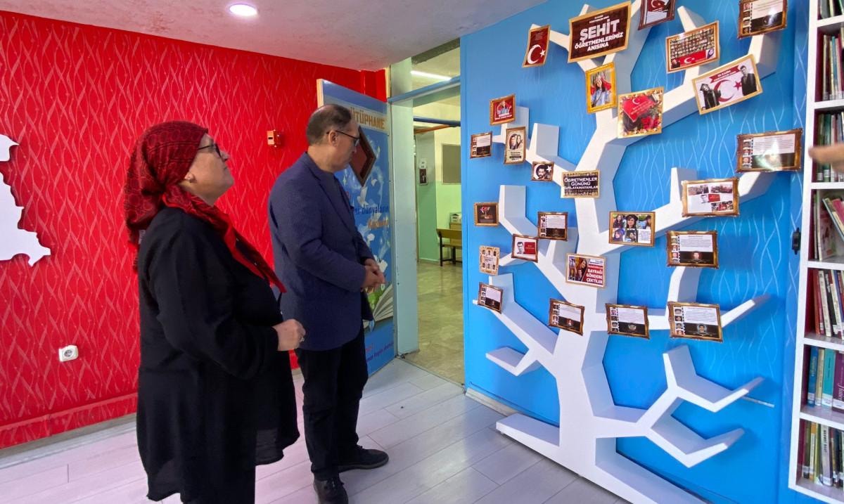 Çok ince ve nazik bir çalışma olmuş. Şehit öğretmenlerimize okulun kütüphanesinde yer ayırarak, öğrencilerimizin de buraya girip çıktıkça burayı göreceğini düşünürsek geçtiğimiz yıllarda neler olduğunu daha iyi anlamalarını sağlayacaktır. Ülkemizin kurucusu Mustafa Kemal Atatürk’ün başöğretmen olması münasebetiyle 24 Kasım Öğretmenler Gününü kutlayacağız. Öncelikle ebediyete intikal eden öğretmenlerimizi rahmetle anıyoruz. Bu ülkeye emeği geçen bütün öğretmenlerimize minnettarız. Biz de vatandaş olarak hem devletimize hem öğretmenlerimize hem çocuklarımıza sahip çıkacağız. Onları ülkemizin geleceğine daha iyi hazırlamak için de elimizden ne geliyorsa yapmaya çalışacağız” ifadelerini kullandı.
