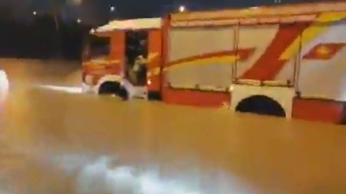 Göle dönen yollarda bir itfaiye aracının da mahsur kaldığı anlar, cep telefonu ile çekilen videoya yansıdı.