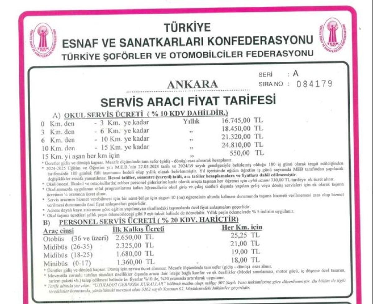 Ankara'da servis ücretlerine yüzde 40'a ulaşan zam yapıldı.