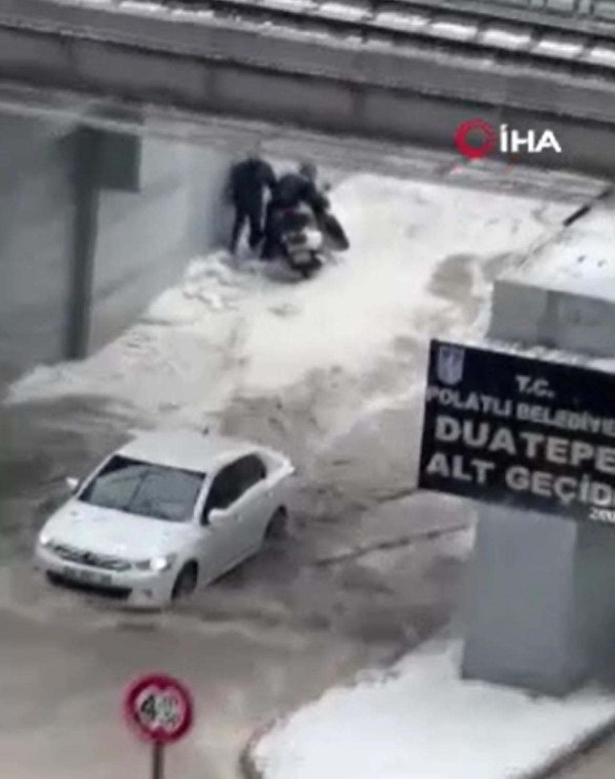 Polatlı ilçesinde sağanak ve dolu yağışı ile birlikte alt geçitler suyla doldu, bazı ev ve iş yerlerini su bastı.