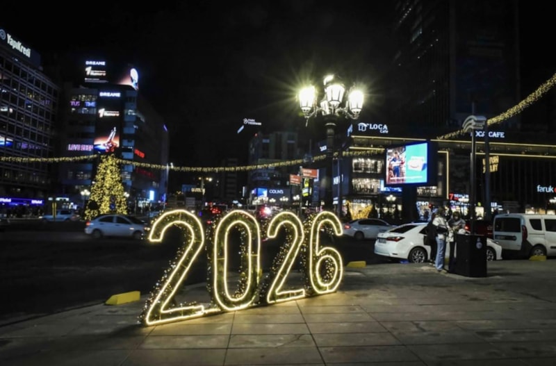 Ankara Büyükşehir Belediyesi'nin Kızılay'a kurduğu dev yılbaşı ağacı ile rengarenk süslemeler dikkati çekerken su ve ulaşım krizi ise devam ediyor.