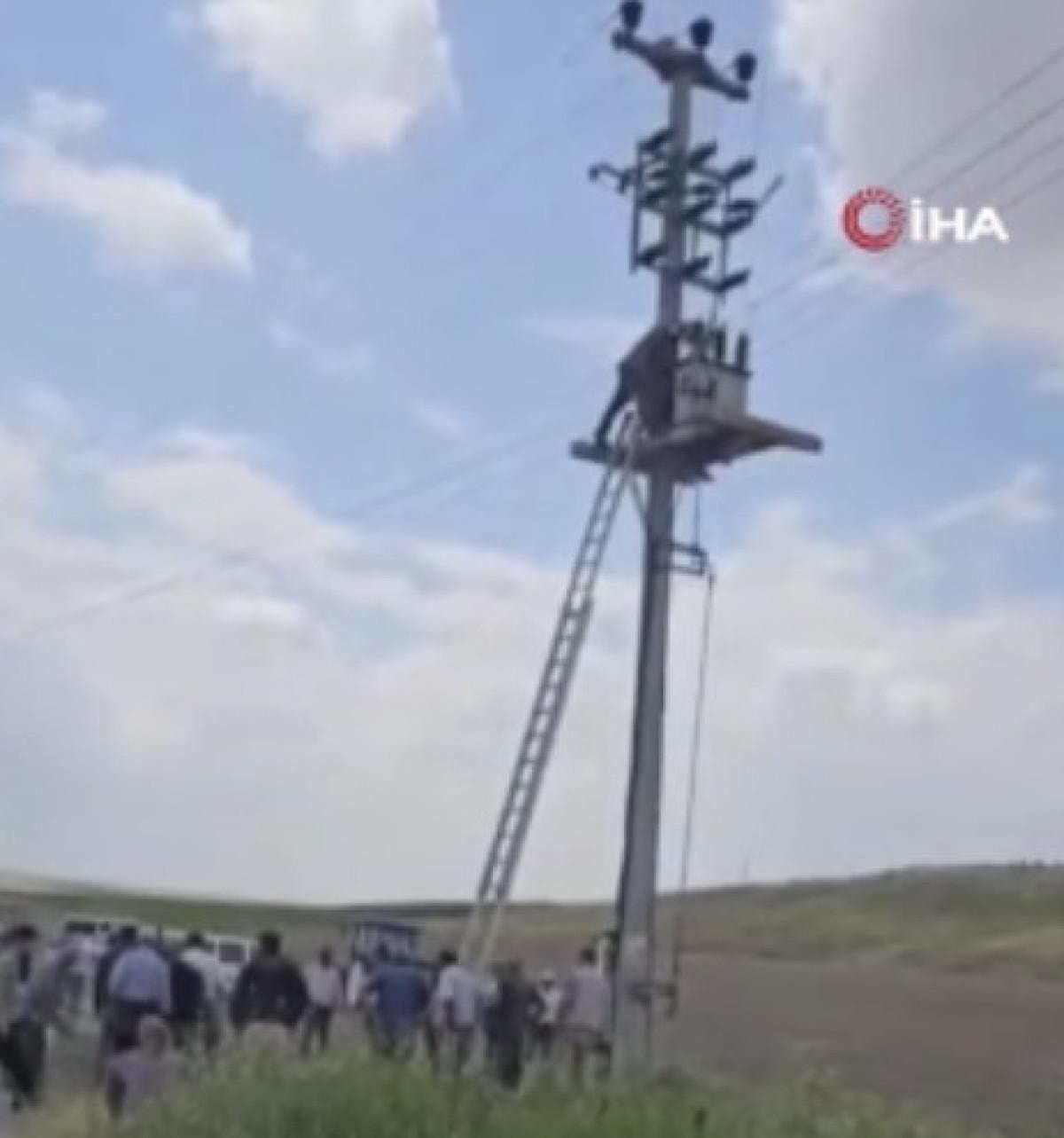 Trafoya çıkan Koç, henüz belirlenemeyen bir nedenle elektrik akımına kapıldı.