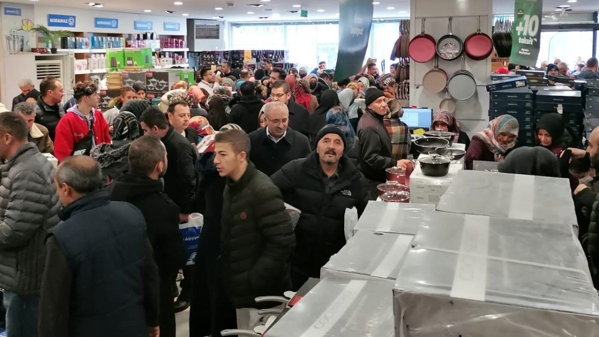 Saat 11.00’de kepengini açan mağazaya vatandaşlar, hücum etti. İzdihamın yaşandığı anlarda birbirleri ile yarışa giren vatandaşlar, görevlilere zor anlar yaşattı.