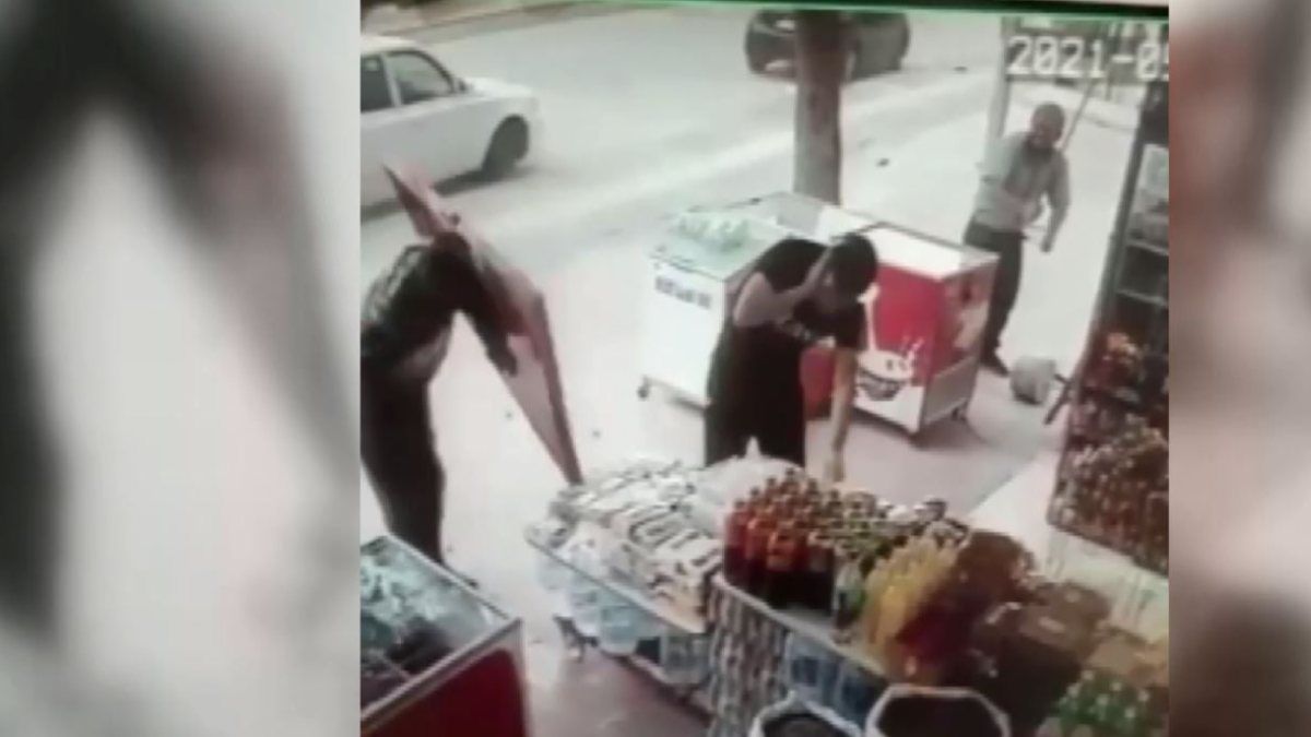 Bu sırada dükkanlardan birinde ilginç bir an yaşandı.