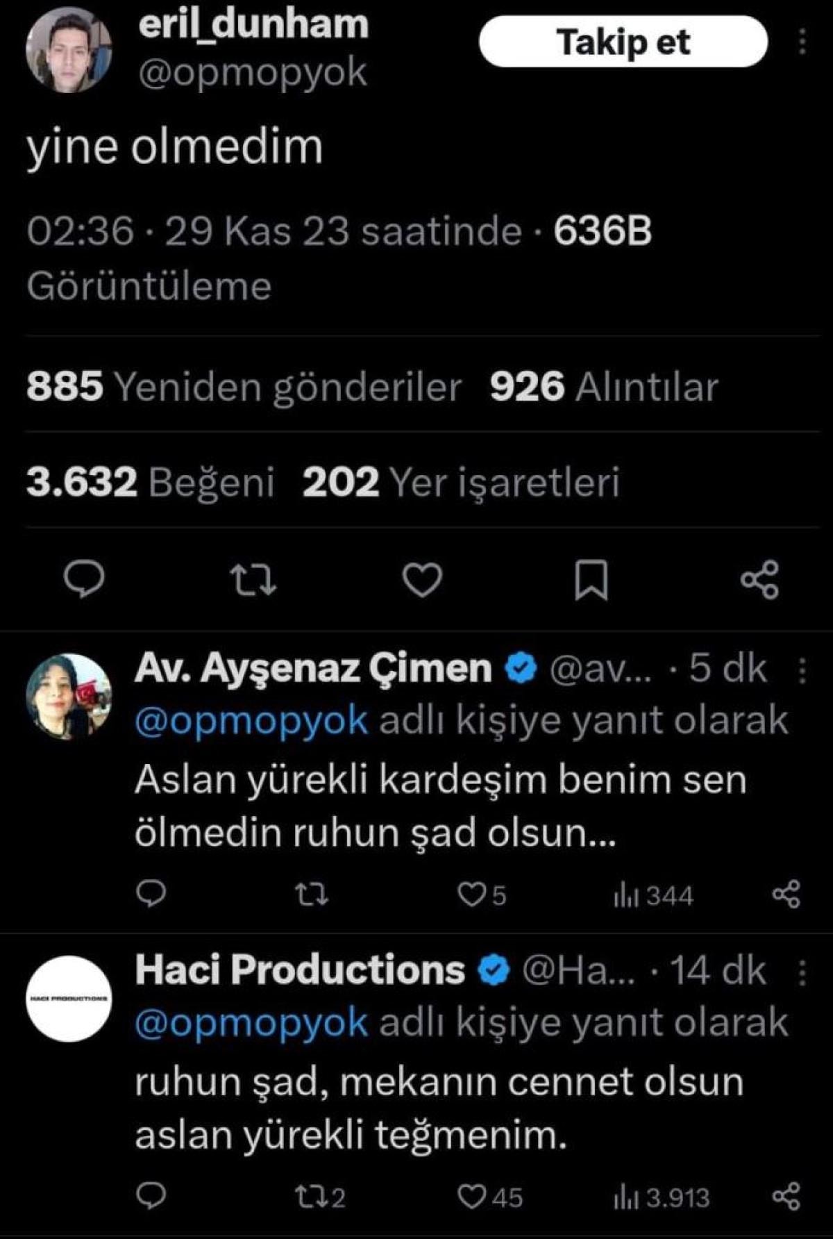 Ayrıca şehit Emir'in, 29 Kasım'da sosyal medya hesabı üzerinden "Yine ölmedim" şeklinde paylaşım yaptığı ortaya çıktı.