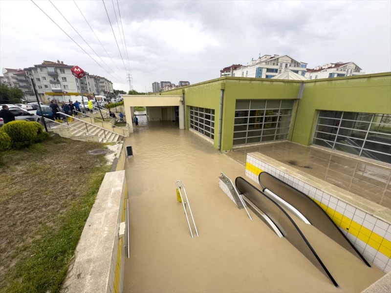 Metronun içine dolan suyun rayların üzerine şelale gibi aktığı görüldü.