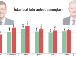 Vatandaşın nabzını yoklayan, Konsensus, Gezici, Optimar, ORC, Avrasya, Piar araştırma şirketlerinin sonuçlarına bakıldığında, İstanbul'da AK Parti'nin İstanbul Büyükşehir Belediye Başkan adayı Binali Yıldırım'ın önde olduğu görülüyor.