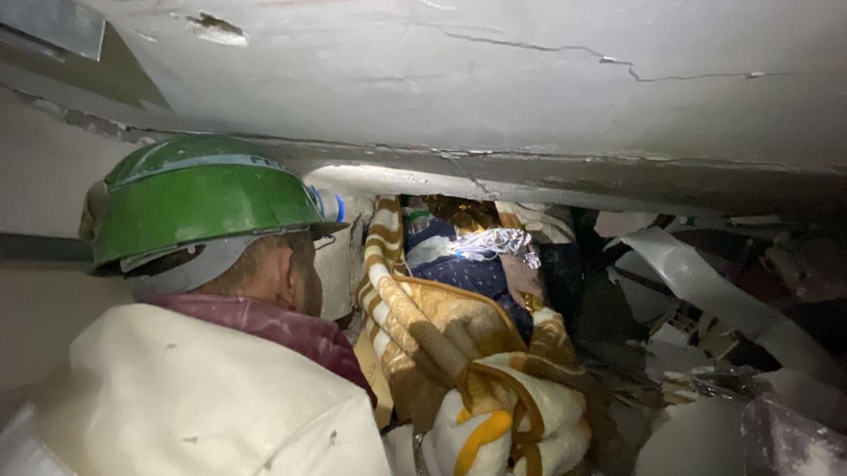 Emek Mahallesi'ndeki enkazda çalışan ekip, depremin 58'inci saatinde gelin ve kaynanayı sağ kurtardı.