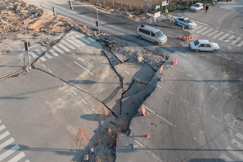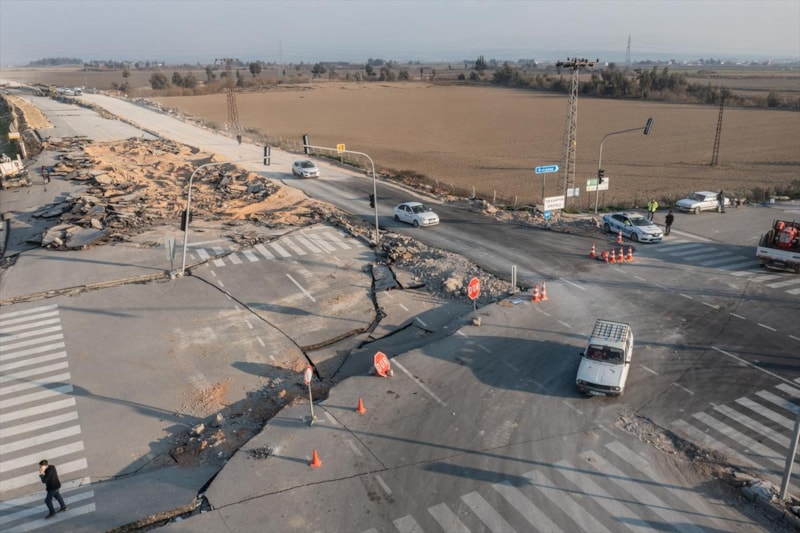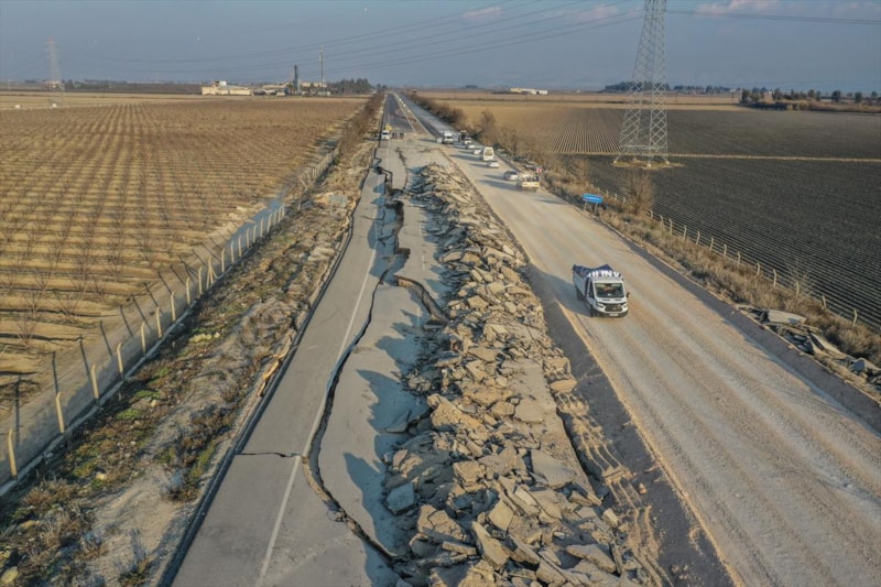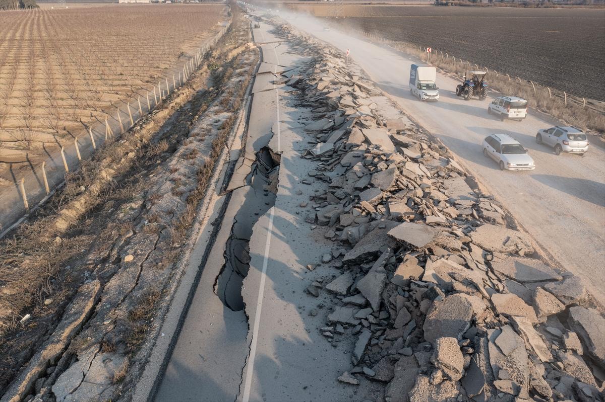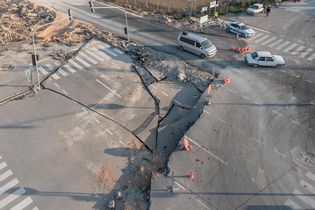 "Asrın felaketi" olarak nitelenen Kahramanmaraş merkezli, 10 ili etkileyen depremlerin ardından Antakya-Cilvegözü kara yolunda Demirköprü mevkiinde oluşan yarıklar, afetin boyutunu gözler önüne seriyor.