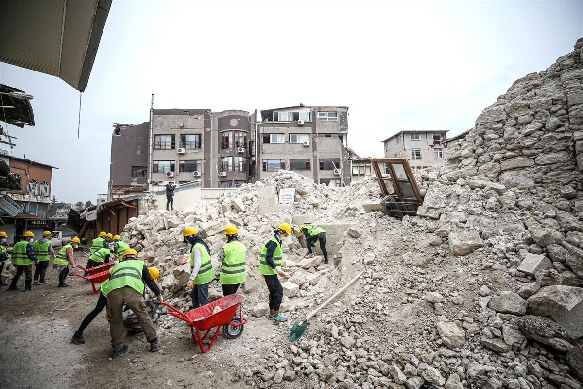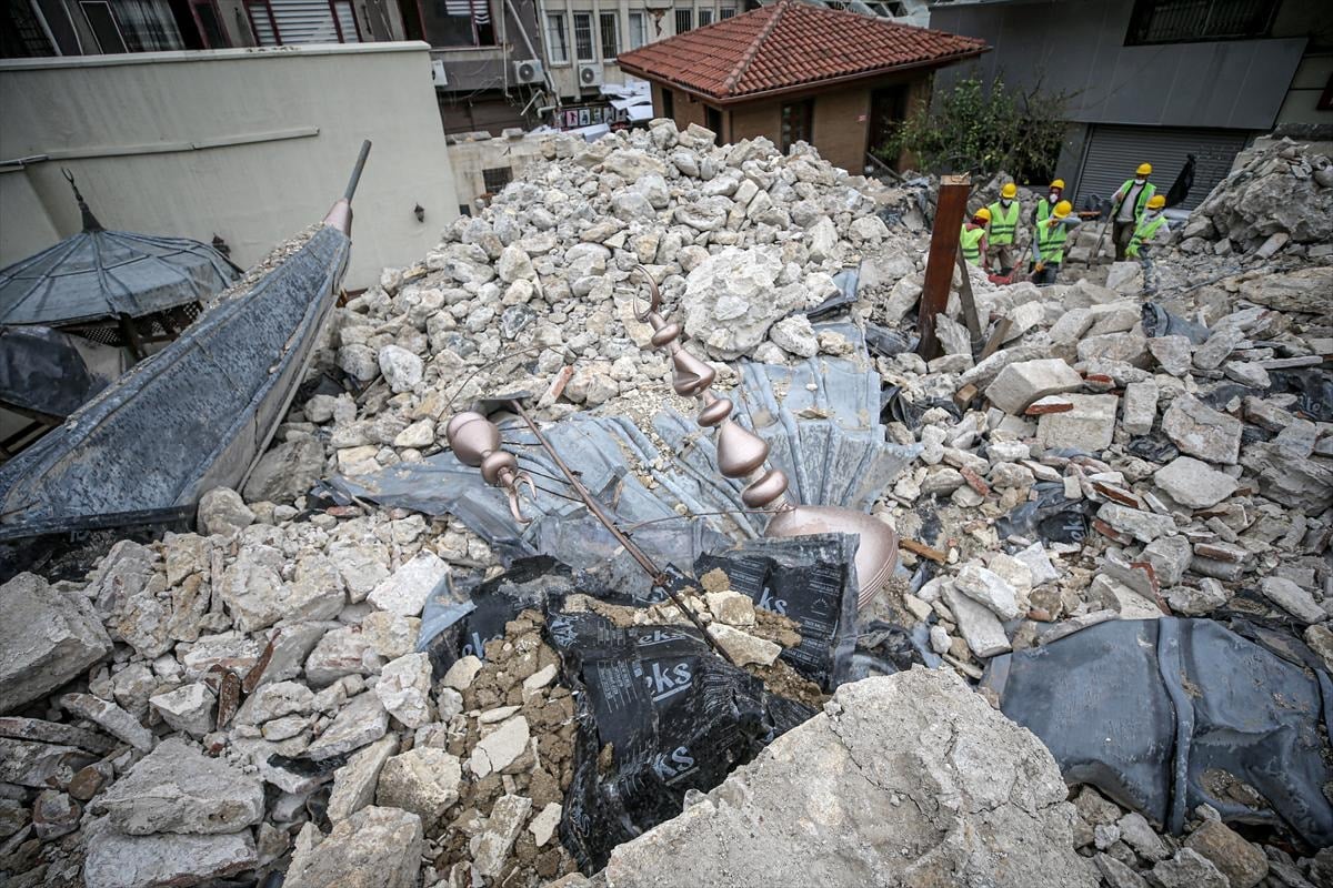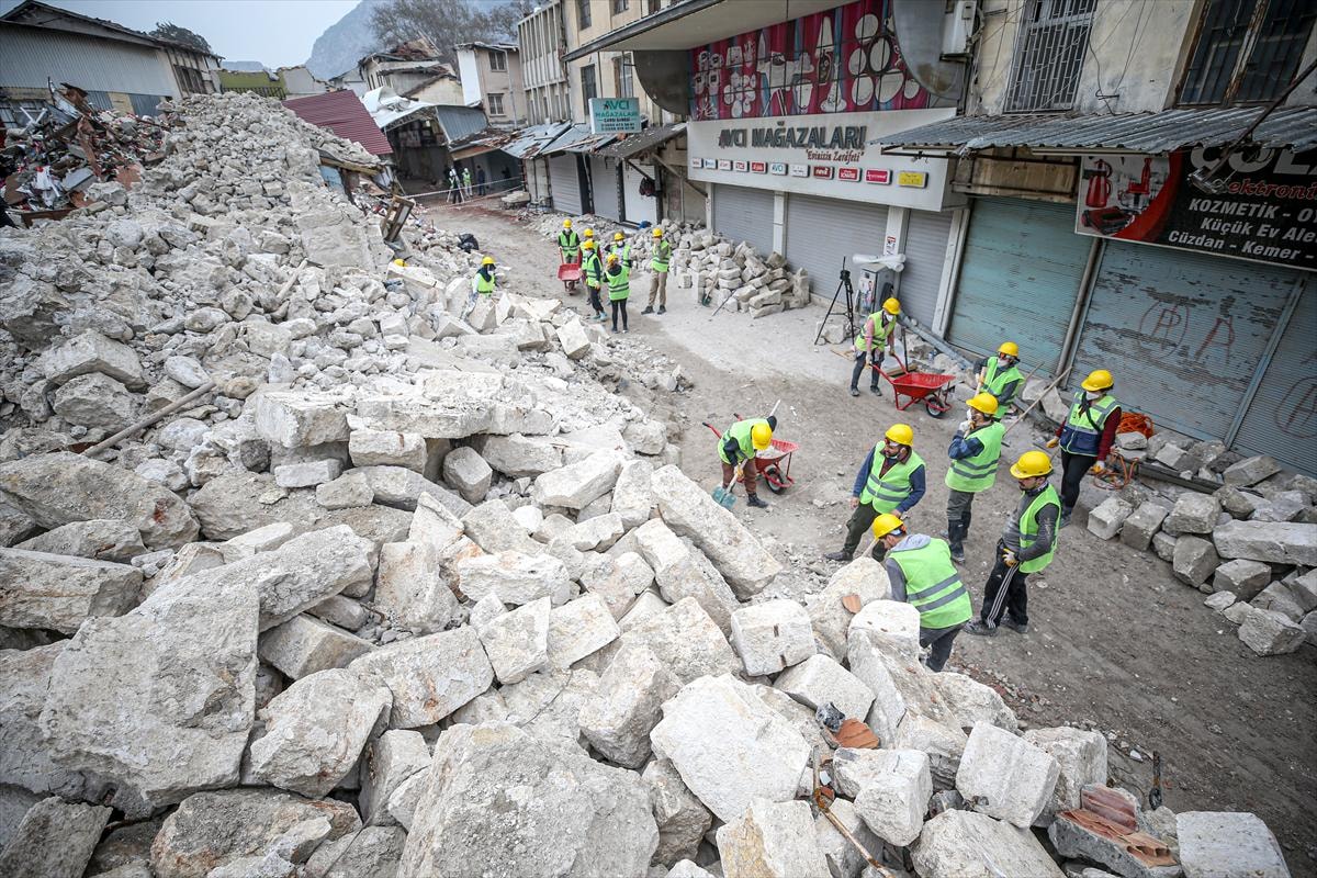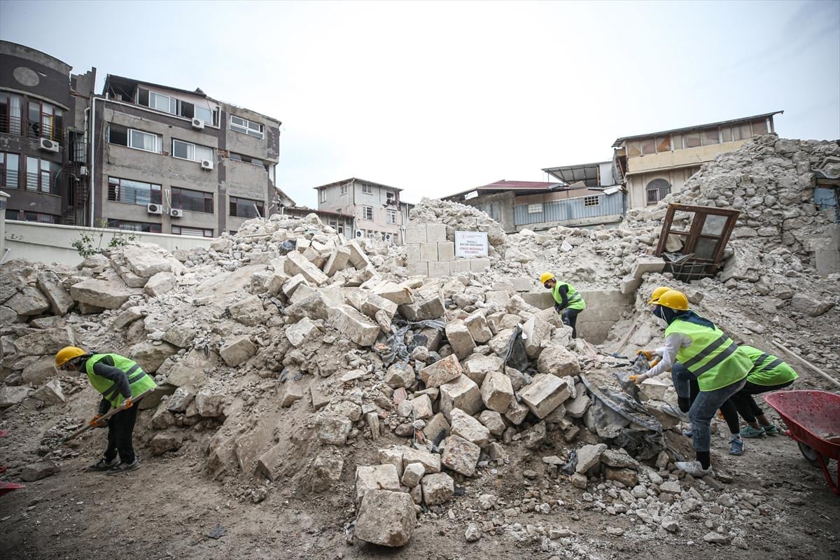 Kültür ve Turizm Bakanlığı bünyesinde kurulan Afet Bölgesi Kazı Başkanlığına bağlı ekipler, tarihi yapının parçalarını enkazdan kurtarmaya çalışıyor.