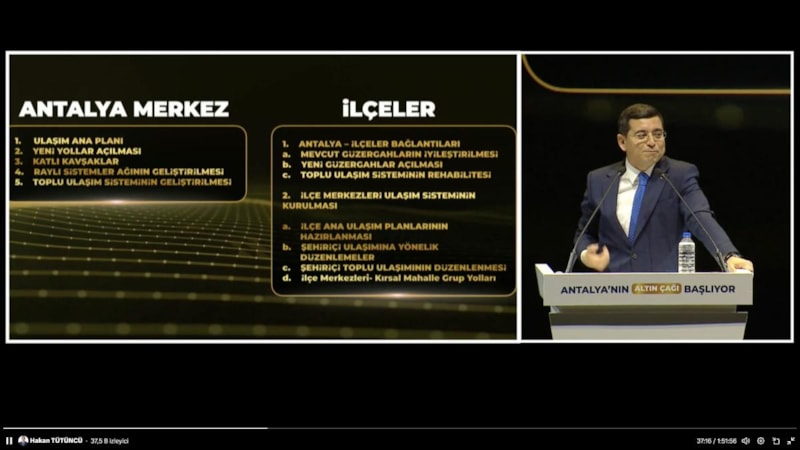 Antalya Büyükşehir Belediye Başkanı Hakan Tütüncü, 2024-2029 dönemine özel projelerini tanıttı.