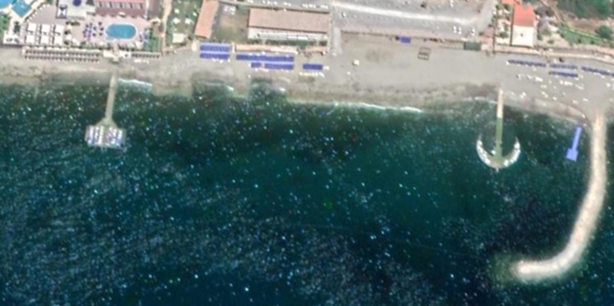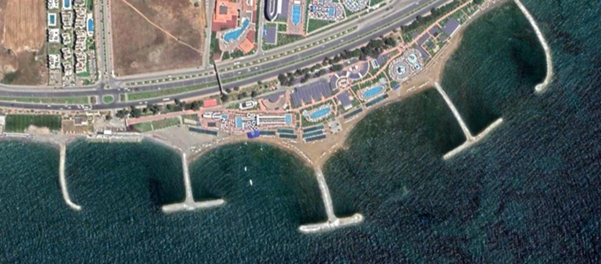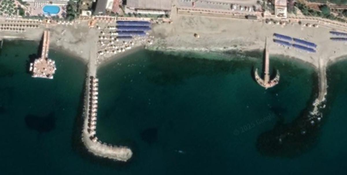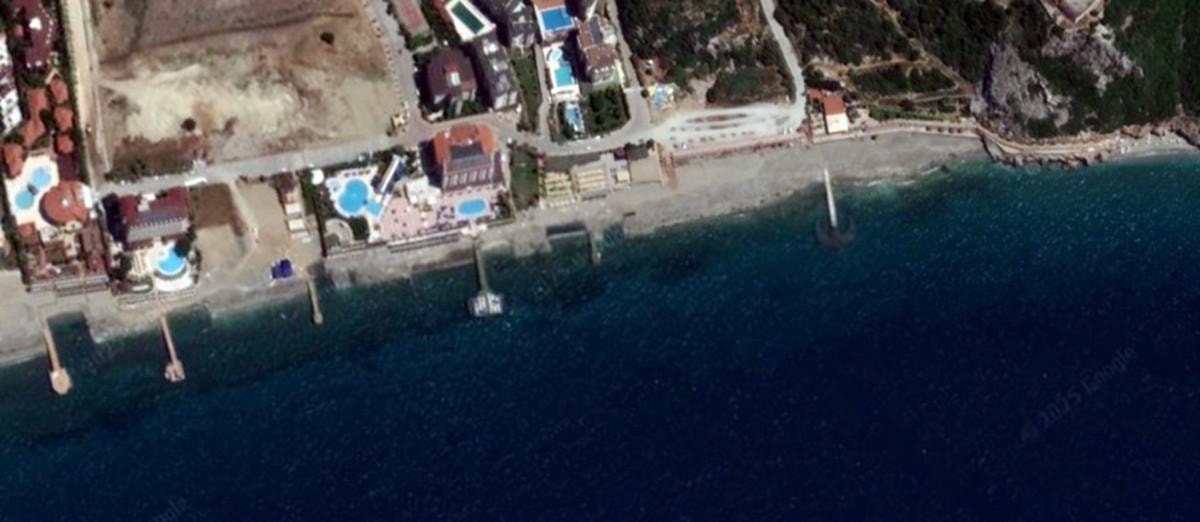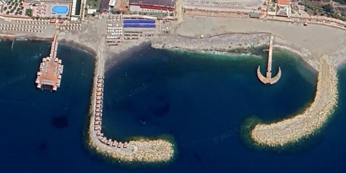 Antalya'da kentin birçok noktasında oteller tarafından kullanılan ve deniz doldurularak yapılan mendirek şeklindeki iskeleler, uydu fotoğraflarıyla belgelendi.