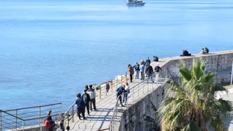 Yerli ve yabancı turistler, limanda yürüyüş yapıp deniz manzarasında fotoğraf çekerek 2024'ün son gününü yaşadı.