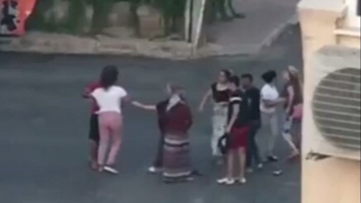 Kadınları ayırmak için devreye 3 erkek girdi. Bir kadın ise kavgayı ayırmaya çalışsa da başaramadı.