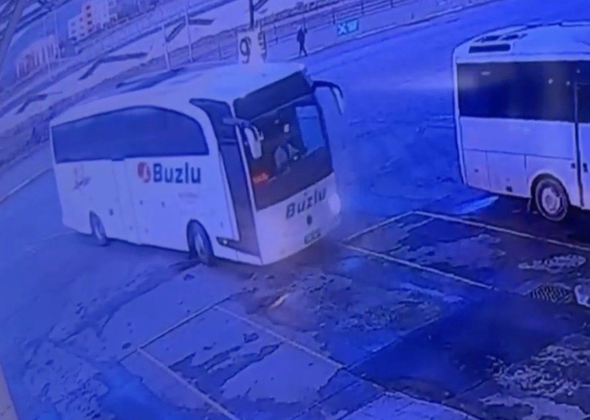 Öte yandan kaza yapan otobüsün son görüntüleri ortaya çıktı.