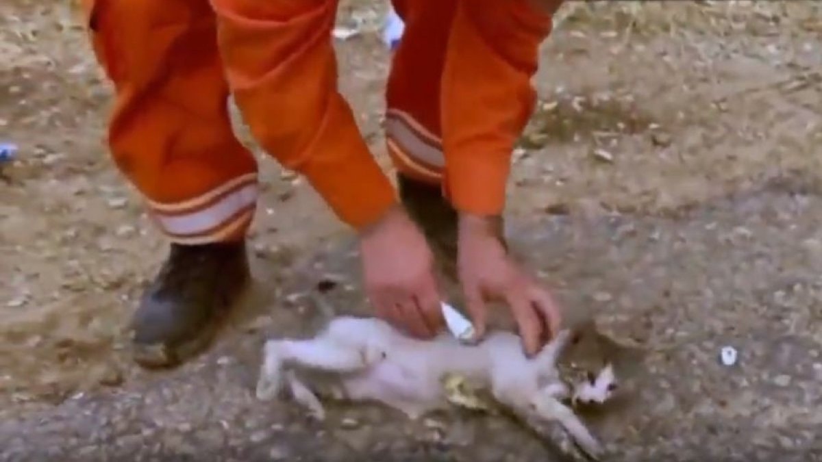 Tarım ve Orman Bakanlığı, Orman Genel Müdürlüğü'nün sosyal medya hesabından, Antalya'nın Kemer ilçesinde çıkan orman yangınından etkilenen kediye gönüllü tarafından yapılan ilk müdahalenin videosu paylaşıldı.