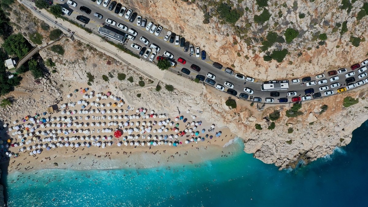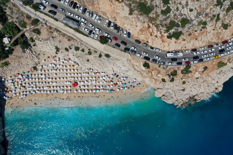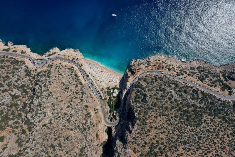 Yaz tatili ve Kurban Bayramı'nı fırsat bilen vatandaşların oluşturduğu yoğunluk sebebiyle Antalya'nın Kaş sahillerinde trafik yoğunluğu meydana geldi.
