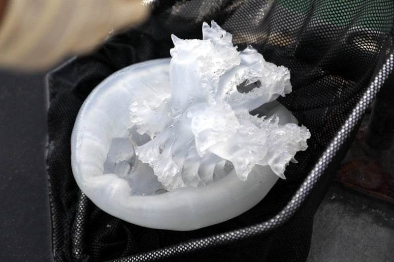 Yakalanan denizanalarının içinde çok sayıda yavru balık bulundu.