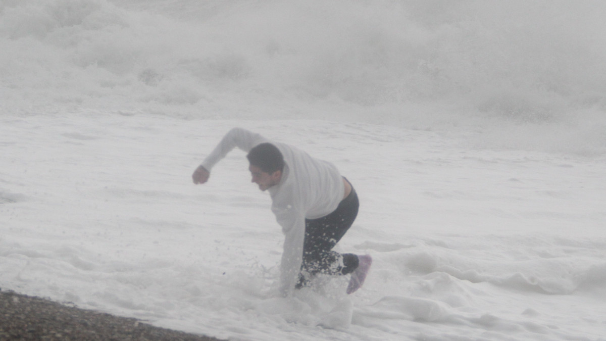 Tehlikeye aldırmayan şahıslar dalgaların arasında ıslanmalarına rağmen çalışmalarına devam etti.