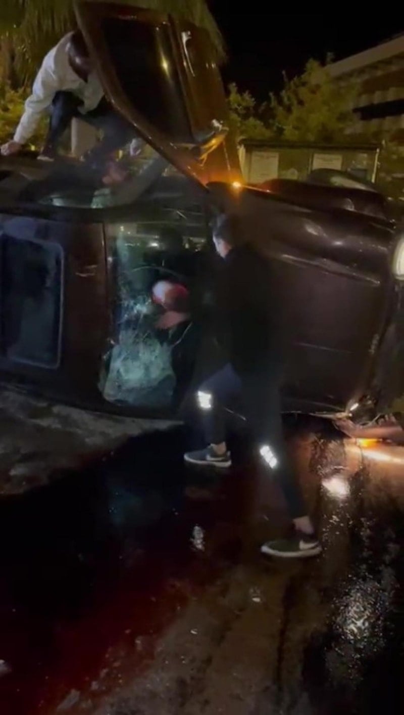 Kazanın hemen ardından çevredeki otelde kalan vatandaşlar dışarı fırlarken, bazıları devrilen araca yardım etmek için harekete geçti.