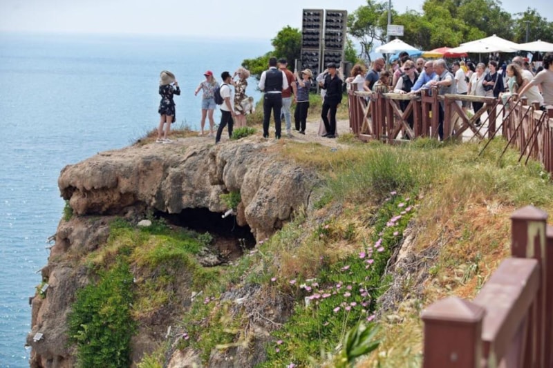 Antalya’nın göz kamaştıran güzelliği Düden Şelalesi, yerli ve yabancı tatilcilerin akınına uğruyor. Şelalenin denizle buluştuğu alana gelen tatilciler, çitleri aşıp yaklaşmak yasak olan falezlerin ucunda daha güzel fotoğraf çekinebilmek için adeta birbirleriyle yarışıyor.