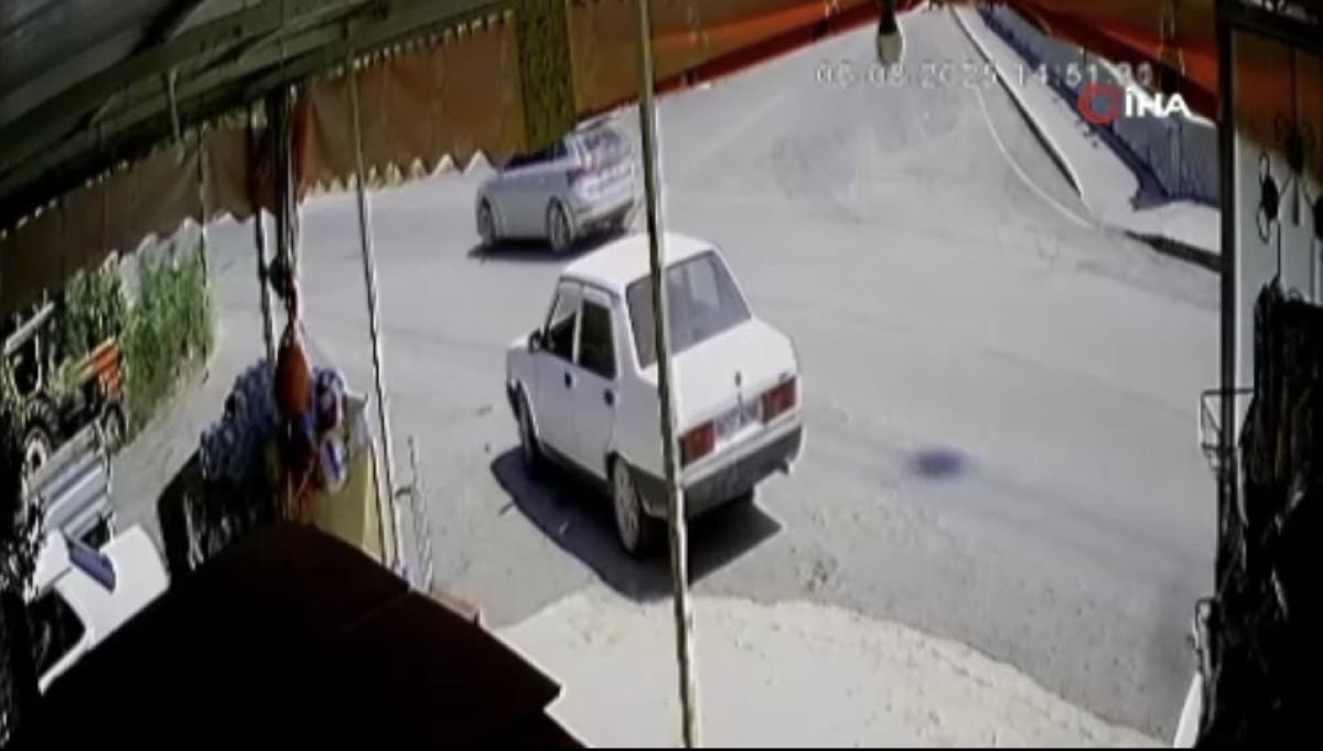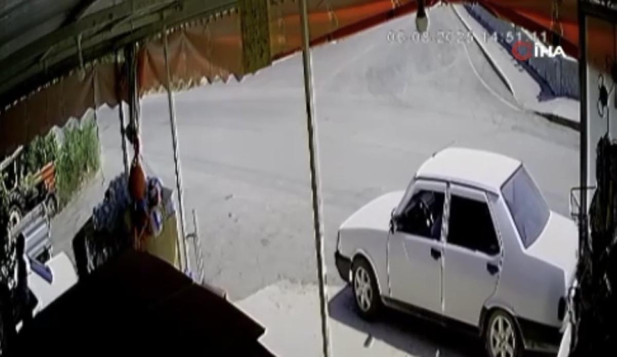 Güvenlik kamerasına yansıyan görüntülerde, otomobilin sürücü markete girdikten hemen sonra hareket ettiği görüldü. Araç, kısa sürede park duvarına çarparak durdu.