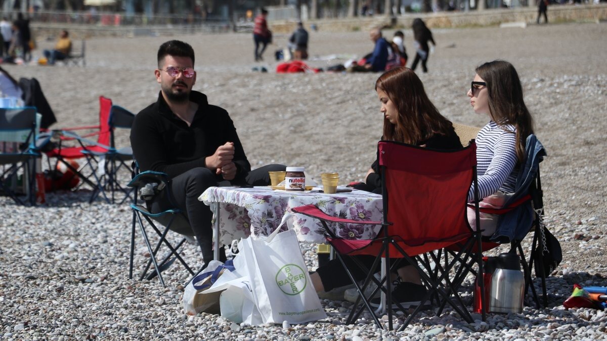 20 dereceye yaklaşan sıcak havayı sabahın erken saatlerinden itibaren sahile inerek değerlendiren Antalyalılar yaşlısı genci ailecek sahili mesken tuttu.