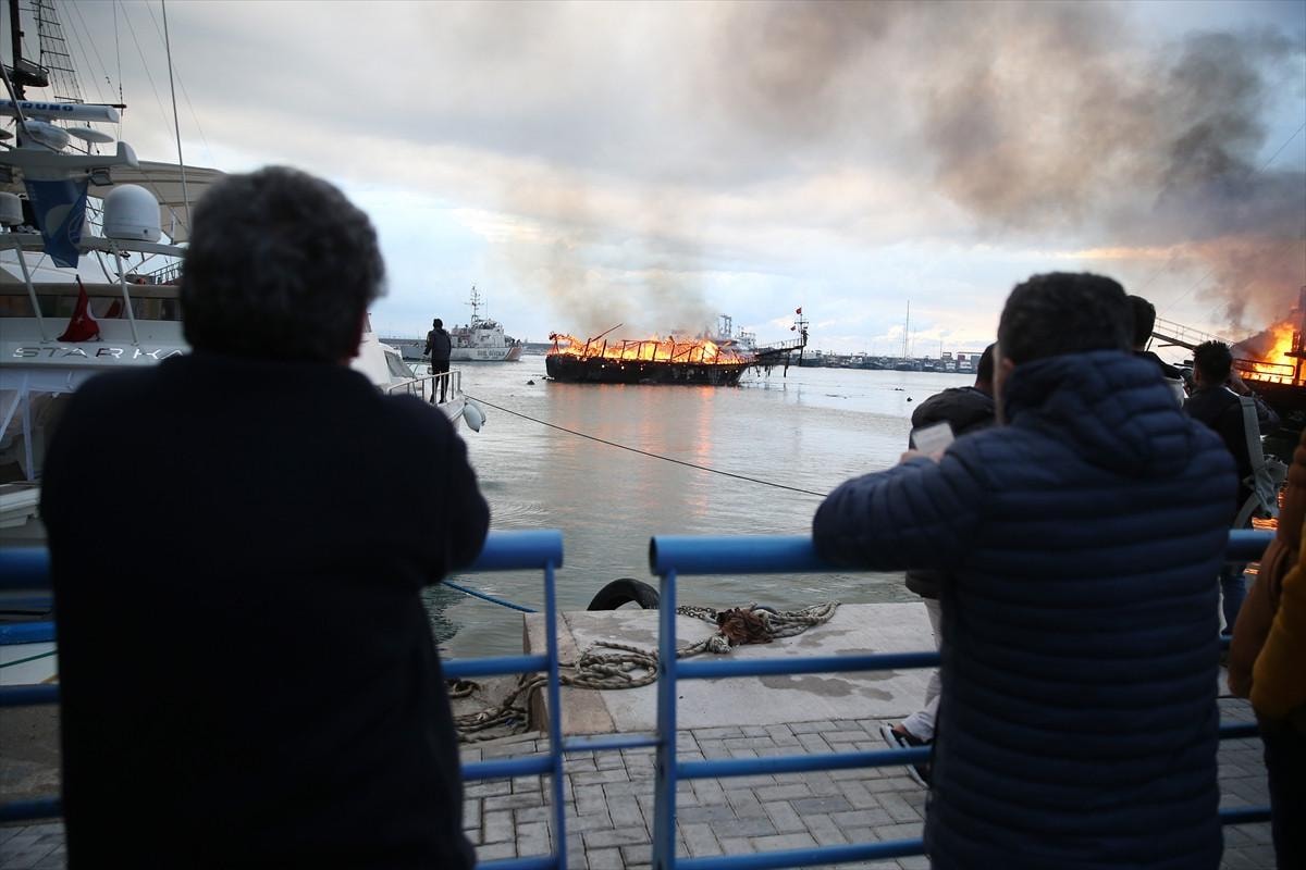 Alevler kısa sürede hararetlenerek tüm tekneyi sararken yangın, yakında bulunan başka bir tekneye daha sıçradı.