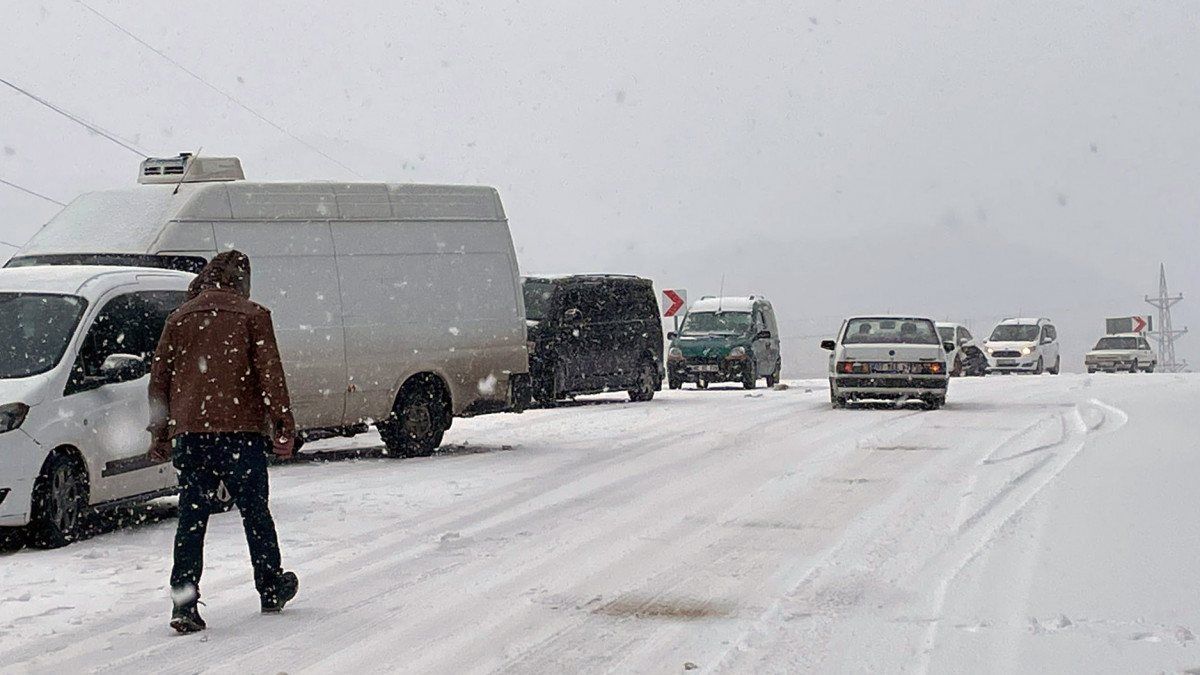 Yağış nedeniyle ilerleyemeyen sürücüler, araçlarını yol kenarlarına park etti. Kış lastiği ve zinciri takılı olmayan araçlar başta olmak üzere 100'e yakın araç kontak kapattı.